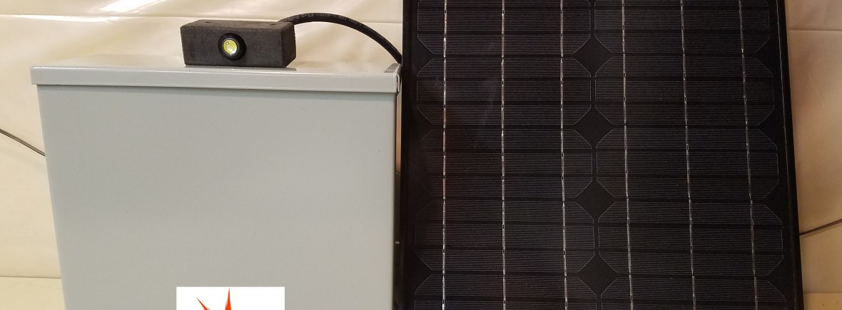KV Solar Solutions works with our customers to design custom solutions for specific applications. Pictured above is an industrial grade Solar Light Kit that is designed to be vandal resistant and to power the KV Solar light puck through the night. The solar panel is mounted to the roof of a building or structure and is then wired to the control panel that houses the charge controller and battery. The KV Solar light puck is then remotely mounted anywhere to provide night time illumination. Interior or exterior.